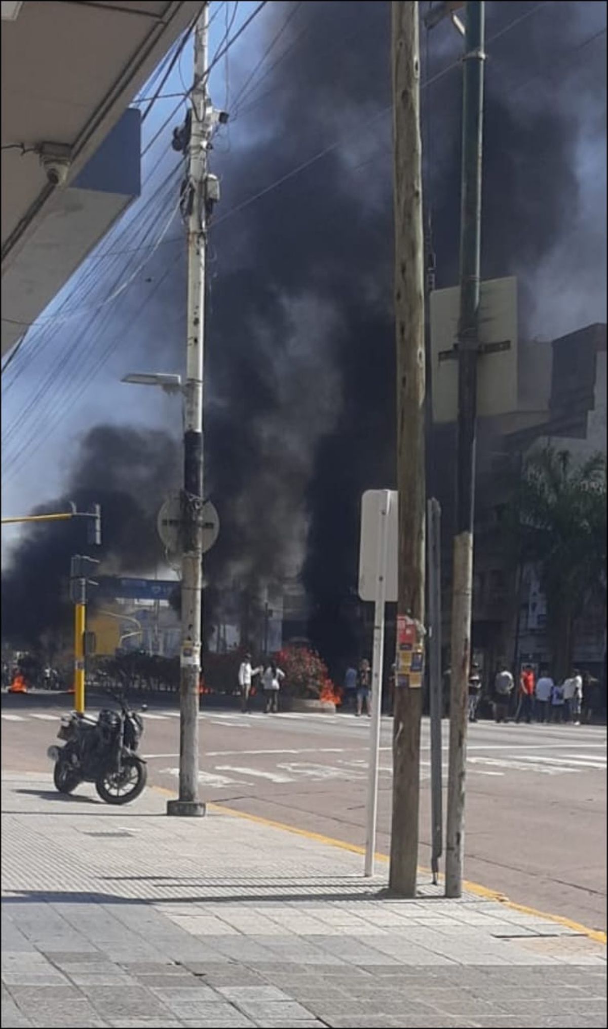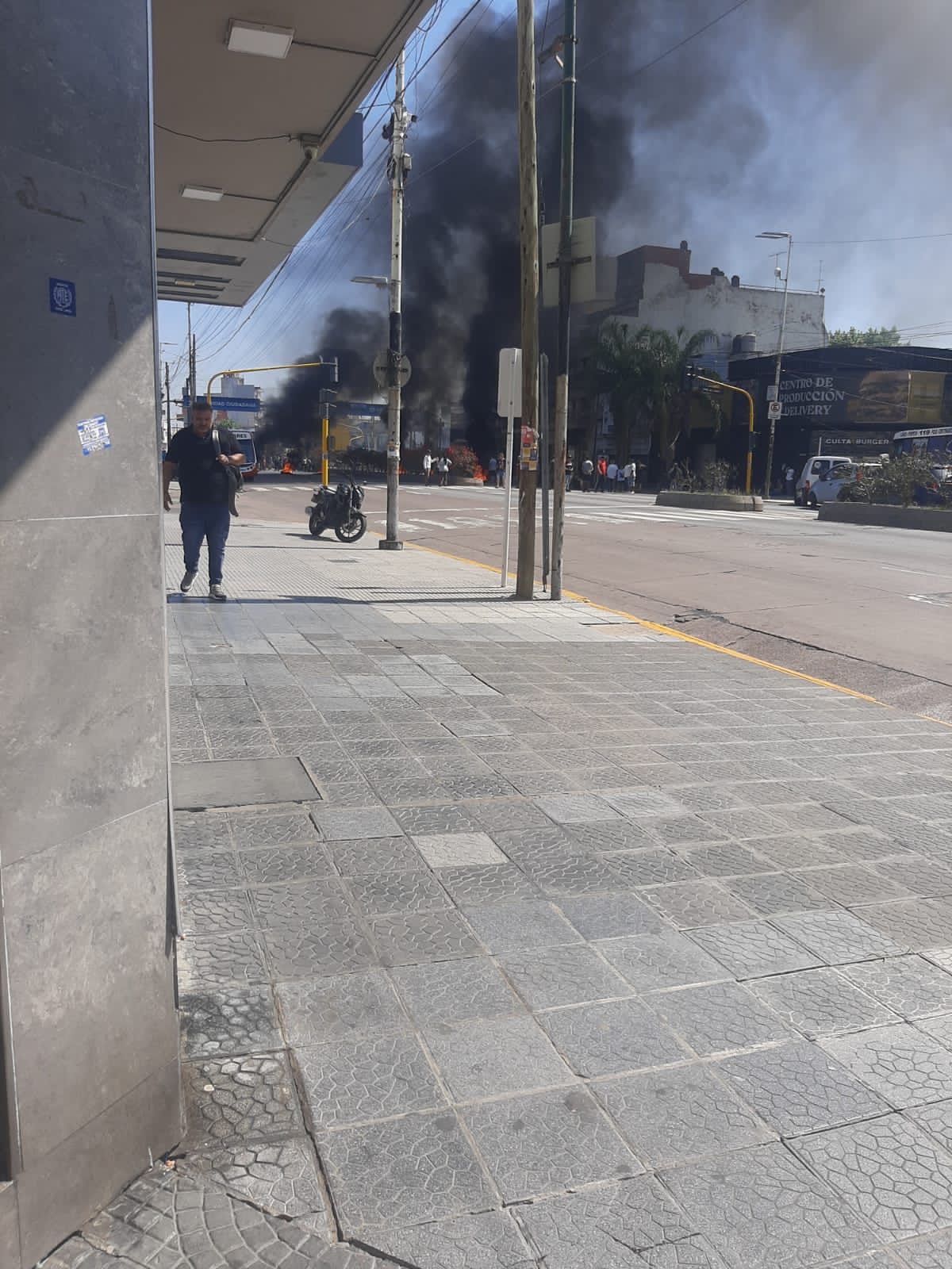 La protesta se desarrolla en la Avenida Hipólito Yrigoyen, justo frente a la Municipalidad de Lanús, lo que genera inconvenientes en el tránsito.