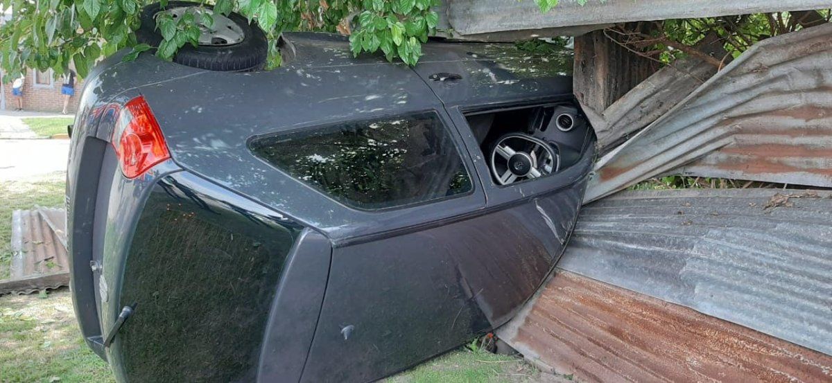 Puntualmente, el auto chocó contra el sector del patio donde solo había una chapa con alambrado y un árbol, motivo por el cual no se vieron graves daños materiales en el lugar.