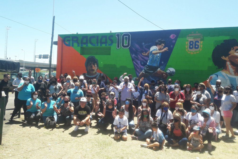 La iniciativa fue encabezada por un grupo de muralistas y distintas organizaciones sociales, culturales, educativas y políticas. A una semana del fallecimiento de Diego, se propusieron homenajearlo con una pintura que muestra tres momentos de su carrera: sus comienzos, su etapa en la Selección Argentina y la consagración en el Mundial de México 1986.