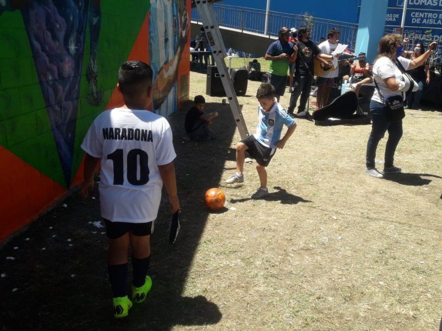La jornada tuvo emoción, fiesta y fútbol. Los vecinos corearon el nombre de Diego Maradona, cantaron y bailaron, mientras los niños jugaban a la pelota.