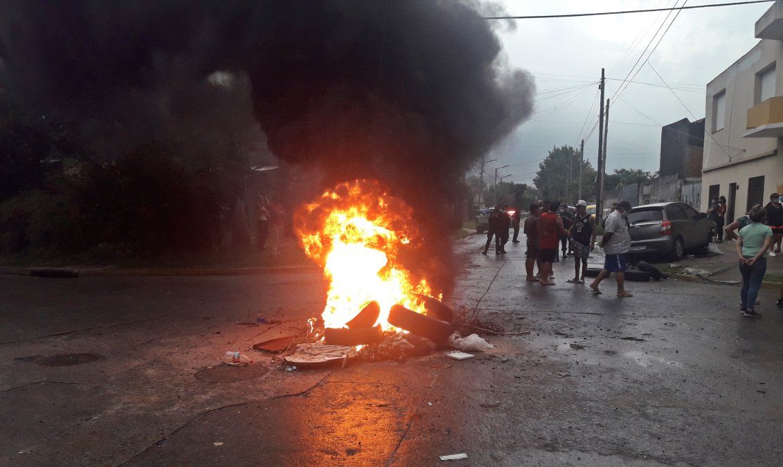 Después de la tragedia, los vecinos realizaron un piquete en Roma y Lynch y otro en Barceló y Lanús, quemando neumáticos. Mientras tanto, la Policía custodiaba el Toyota Etios.