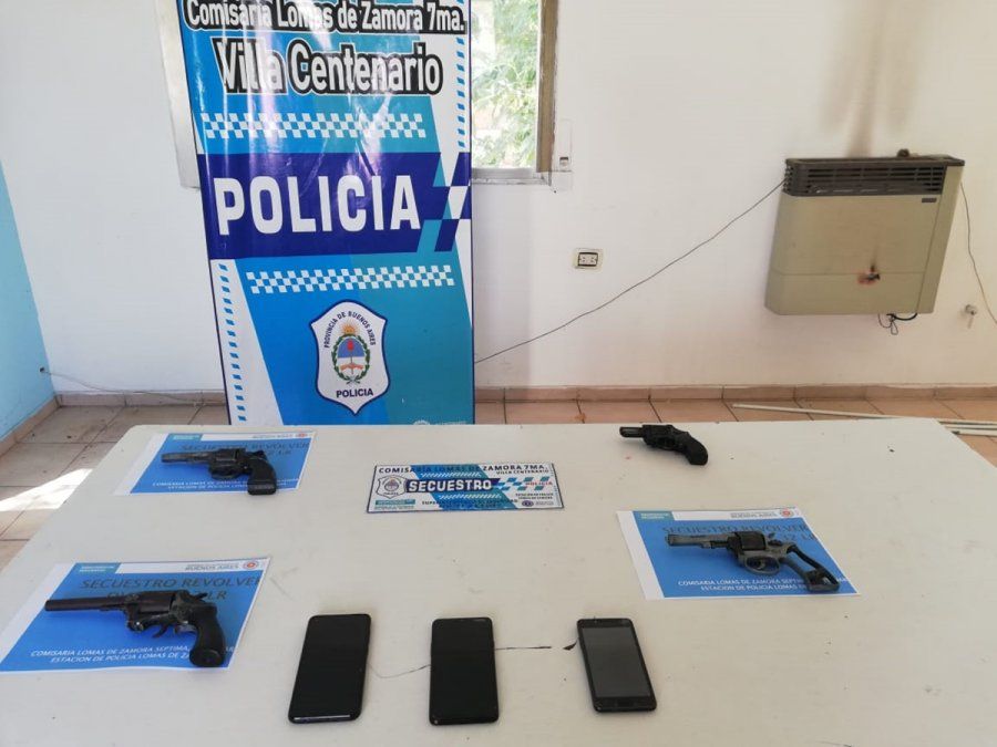 En la primera casa, de la calle Capitán J. Yaben, detuvieron a un joven de 20 años, quien tenía en su poder dos revólveres calibre 32, ambos con la numeración suprimida. Además le incautaron dos celulares.