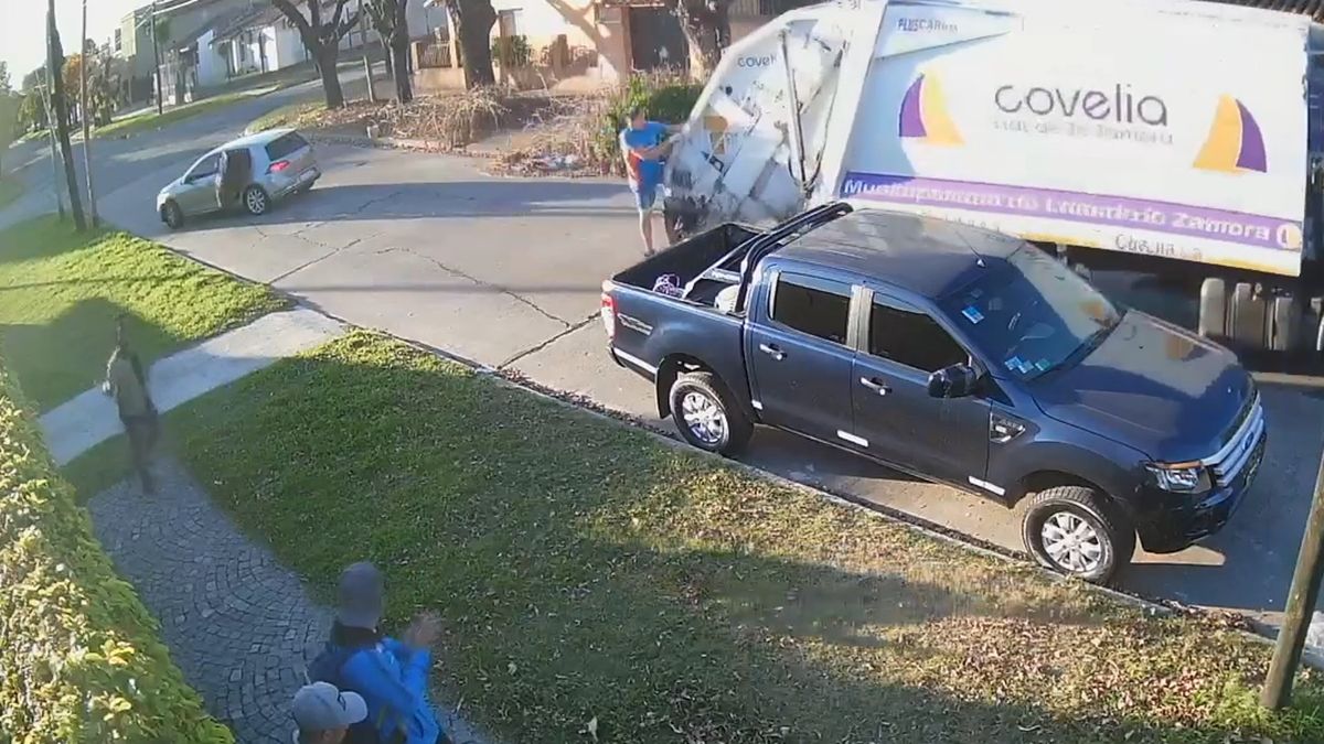Los delincuentes usaron al camión como "pantalla", esperaron que se fuera y atacaron a sus víctimas en Banfield. El robo quedó filmado.