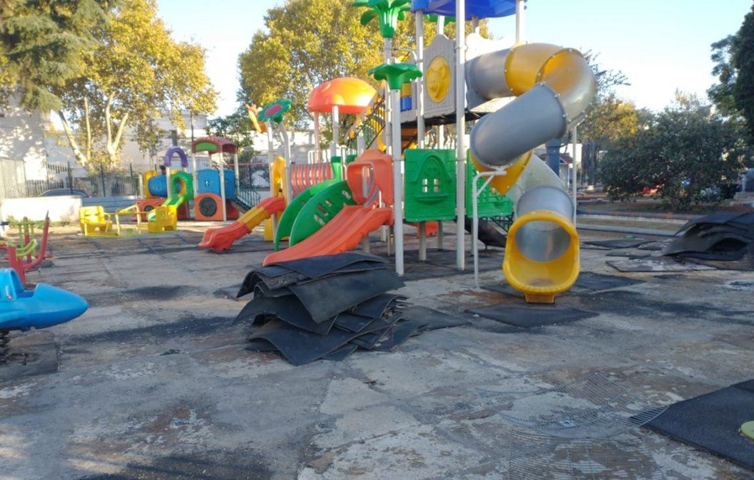 Había sido instalado en enero de 2019. Aunque el sector de juegos de la Plaza Grigera estuvo mucho tiempo cerrado por la pandemia, se decidió rehacer el suelo.