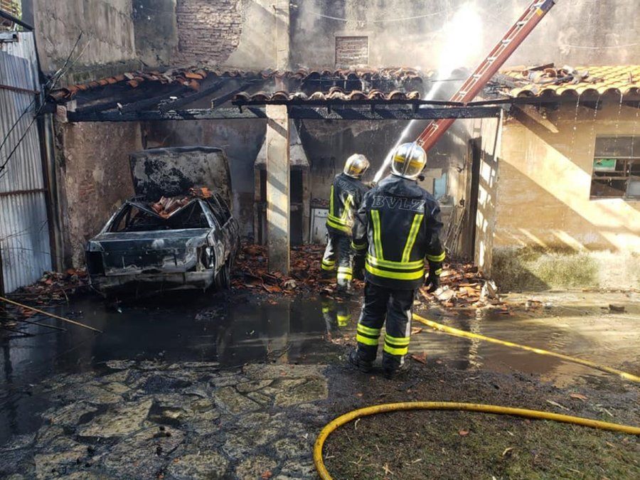Las llamas afectaron el fondo de una vivienda y un vehículo en el polo gastronómico de Lomas de Zamora. Trabajaron casi dos horas para apagar el incendio.