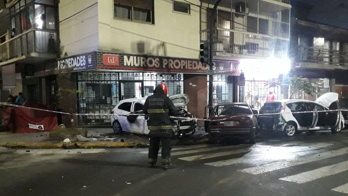 El choque hizo que el Chevrolet volcara y casi se incrusta en el frente de una inmobiliaria de esa esquina. La joven murió prácticamente en el acto, mientras que el conductor del Renault logró salir del coche justo antes que se incendiara y escapó del lugar.