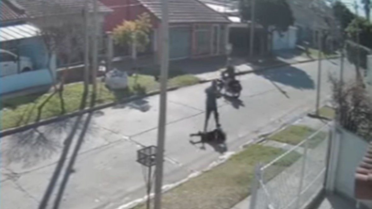 El agresor y su cómplice se dieron a la fuga mientras la víctima era auxiliada por vecinos. Apenas se podía levantar. Toda la secuencia del robo quedó registrada en la cámara de seguridad de esa cuadra.