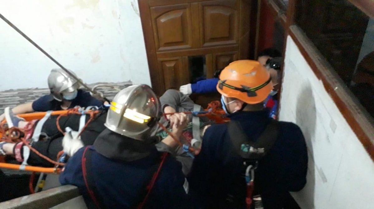 Los efectivos utilizaron cuerdas y una canasta de rescate y así lograron bajar a la mujer para que fuera trasladada a un centro de salud.