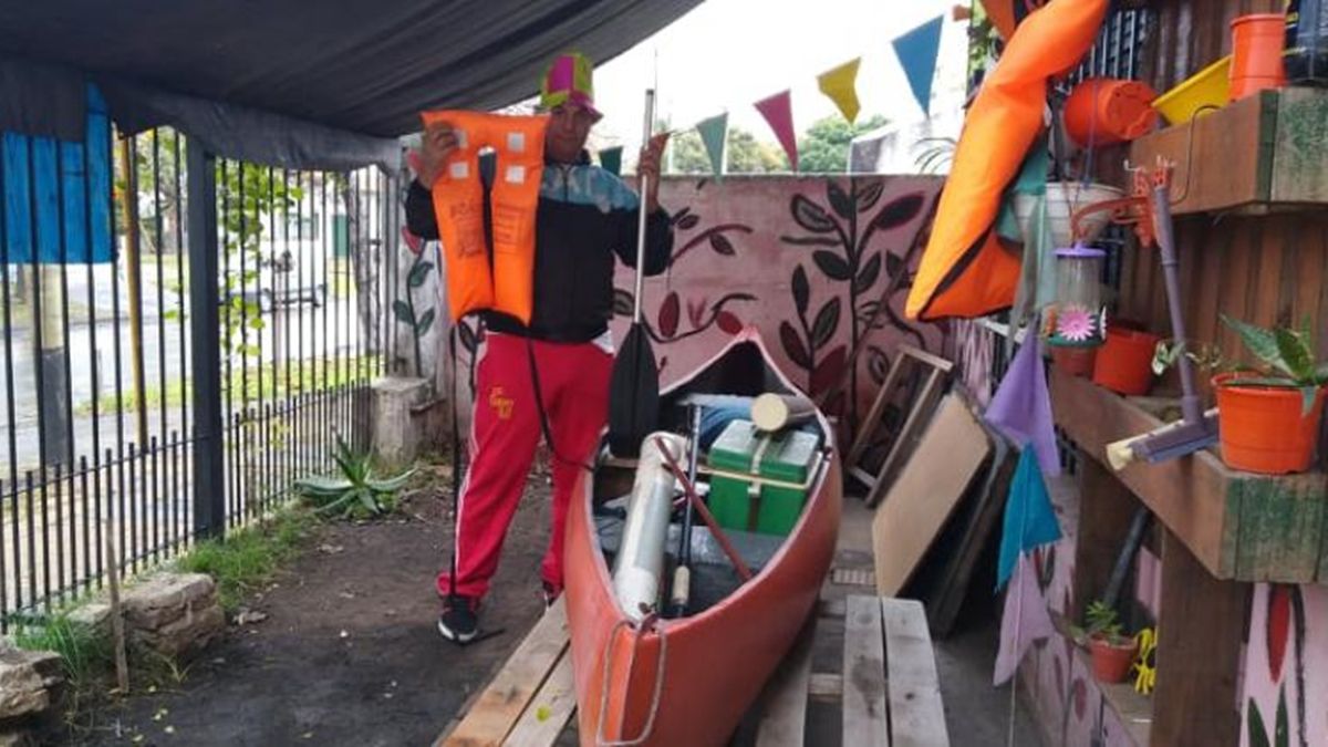 Lamentablemente la iniciativa solidaria casi termina en tragedia. La canoa de Leo se llenó de agua y empezó a hundirse. Tuvo suerte de que por ahí pasaban unos rescatistas pescando que inmediatamente lo ayudaron. Luego se sumaron los Bomberos de Junín.