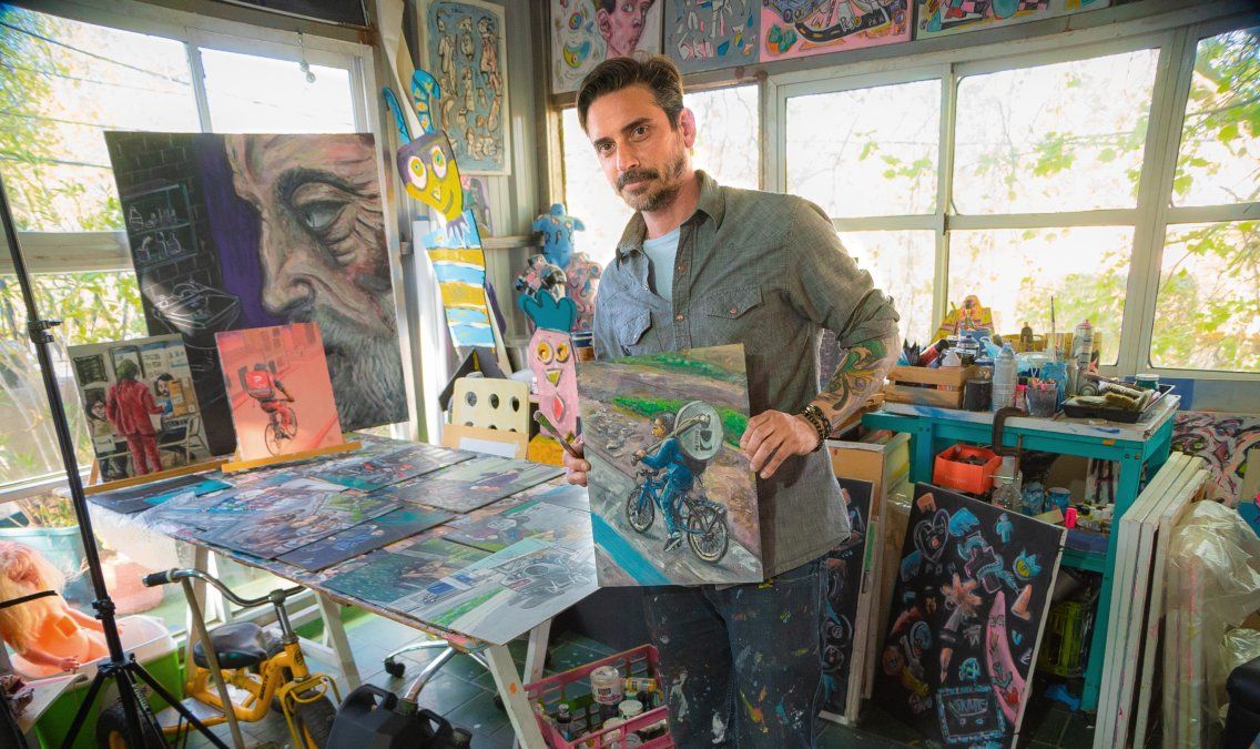 Durante los días de encierro en pandemia, el pintor de Lomas de Zamora descubrió que “los materiales no tienen que ser un límite” y por eso pide “que la gente se anime a pintar lo que tenga en la cabeza, lo que vea, con lo que tenga a mano”.