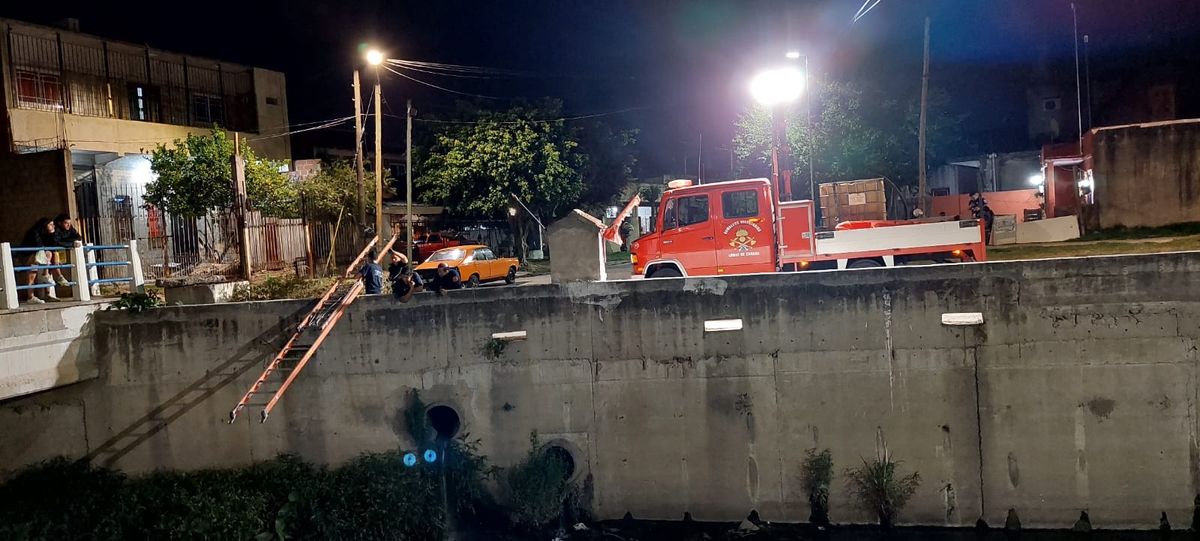 Los Bomberos Voluntarios de Lomas de Zamora trabajaron durante más de una hora para poder rescatar a los perros que habían caído al Arroyo del Rey en Lomas.