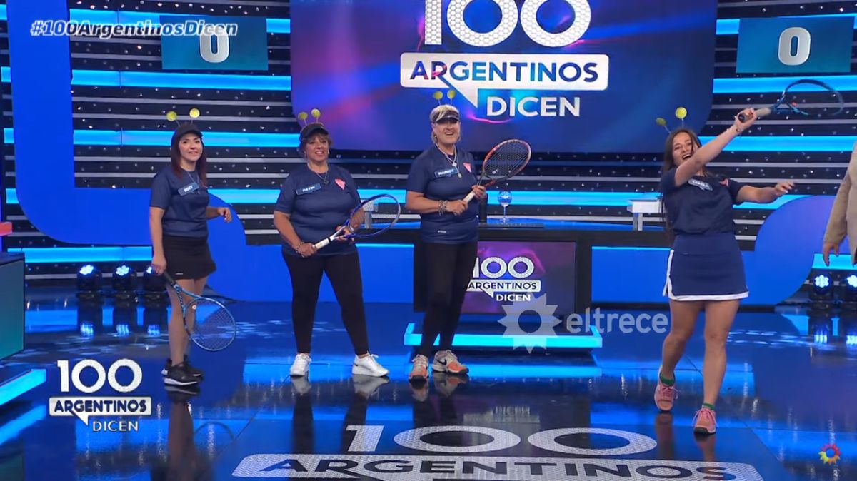 Roxy, Patín, Margot y Carola se presentaron a participar bajo el mote de "Tenistas" y todas con la camiseta azul de Los Andes. El grupo de mujeres, según contaron, juegan al tenis de manera recreativa en el club de Lomas. Fueron ellas las que, a mitad del programa de ayer, le regalaron una camiseta del Mil rayitas a Barassi, quien no se la sacó hasta el cierre.