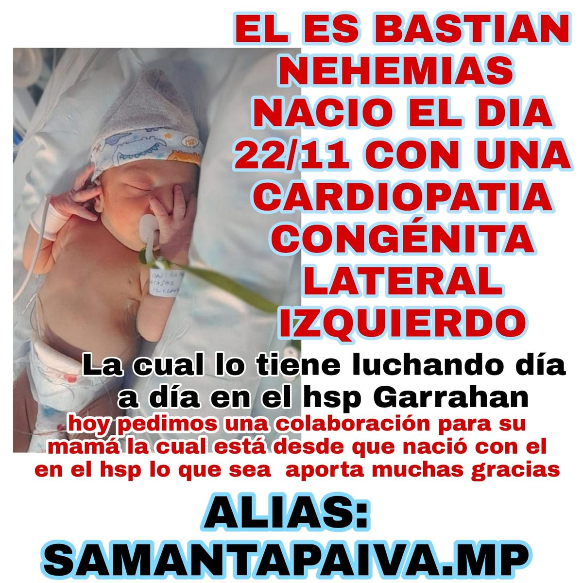 “Con todo esto se nos empezó a complicar mucho abrir la parrilla que tenemos con mi familia, y estar en un hospital trae muchos gastos que no estamos en condiciones de afrontar”, detalló Natasha que se tuvo que trasladar desde la Maternidad Sardá, donde nació Bastian hasta el Hospital Garrahan para la operación de su hijo. “No es fácil, hay que seguir pagando todo y no tenemos ingresos”, finalizó la joven.