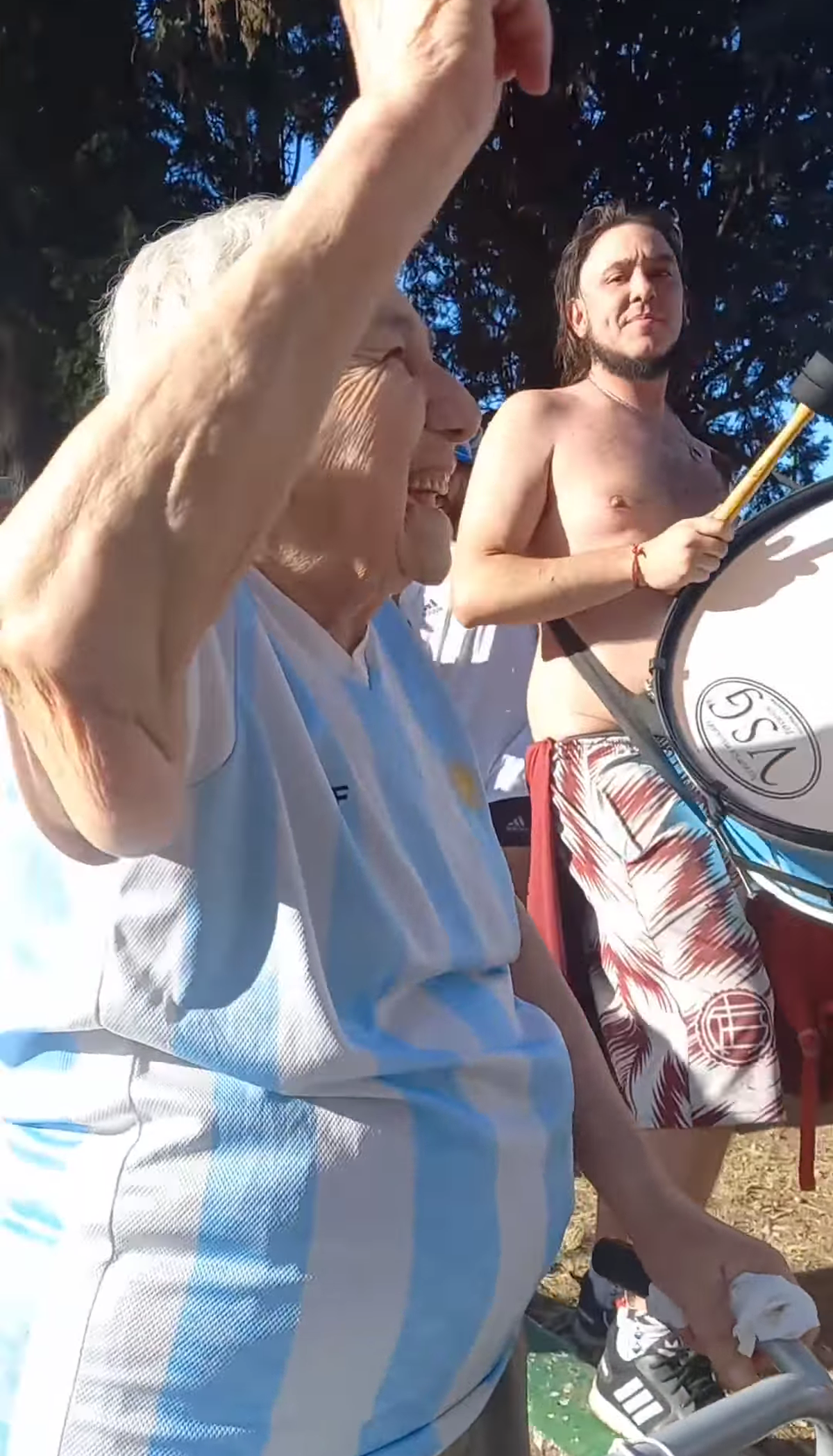 “Gracias a Dios puedo andar bien con el caminador. No estaba tan caluroso así que nos fuimos con las banderas a la plaza y pasé una fiesta muy linda, lo encontré a mi hijo también tocando el bombo. Fue un día hermoso”, continuó la señora que a sus 84 años no podía dejar de festejar este nuevo título mundial de la Selección Argentina.