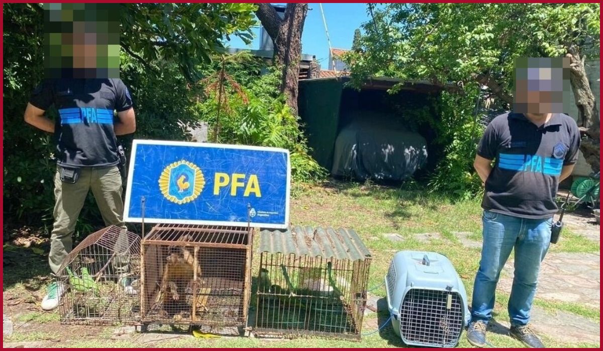 Durante el procedimiento, la Policía Federal rescató a una hembra de mono Caí que se encontraba en una jaula a la intemperie, dos tortugas de agua y distintas aves exóticas. Además, los efectivos secuestraron cueros y especies disecadas derivadas de la caza furtiva de ciervos; cueros de puma y zorros.