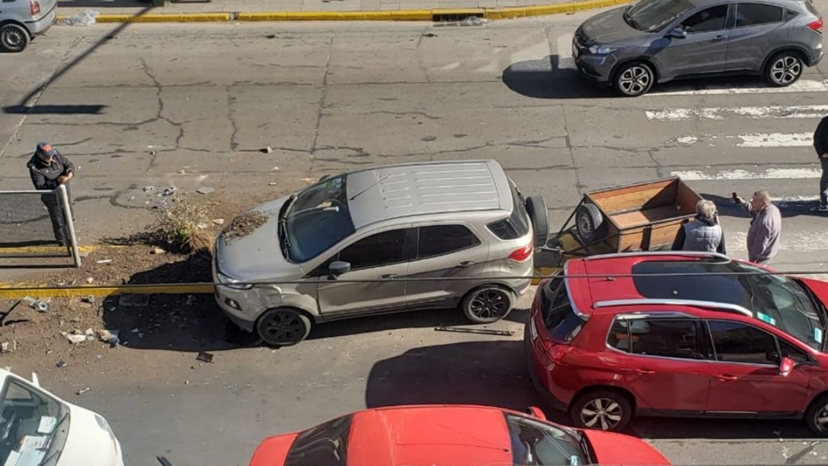 Fue así como una Ford Ecosport gris perdió el control, se incrustó en los macetones de la avenida Hipólito Yrigoyen y terminó subida al boulevard.