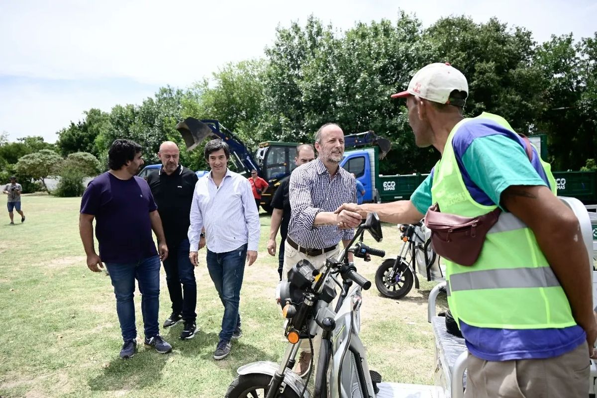 "Presentamos 40 nuevos móviles para mejorar la gestión de residuos sólidos urbanos en Lomas, de los cuales 10 son motos eléctricas destinadas a la recolección de reciclables por parte de las y los motorecicladores. La incorporación de maquinaria resulta fundamental para el saneamiento urbano y el cuidado de nuestro ambiente", expresó el ministro coordinador bonaerense, en la presentación que se realizó en el Parque Eva Perón.