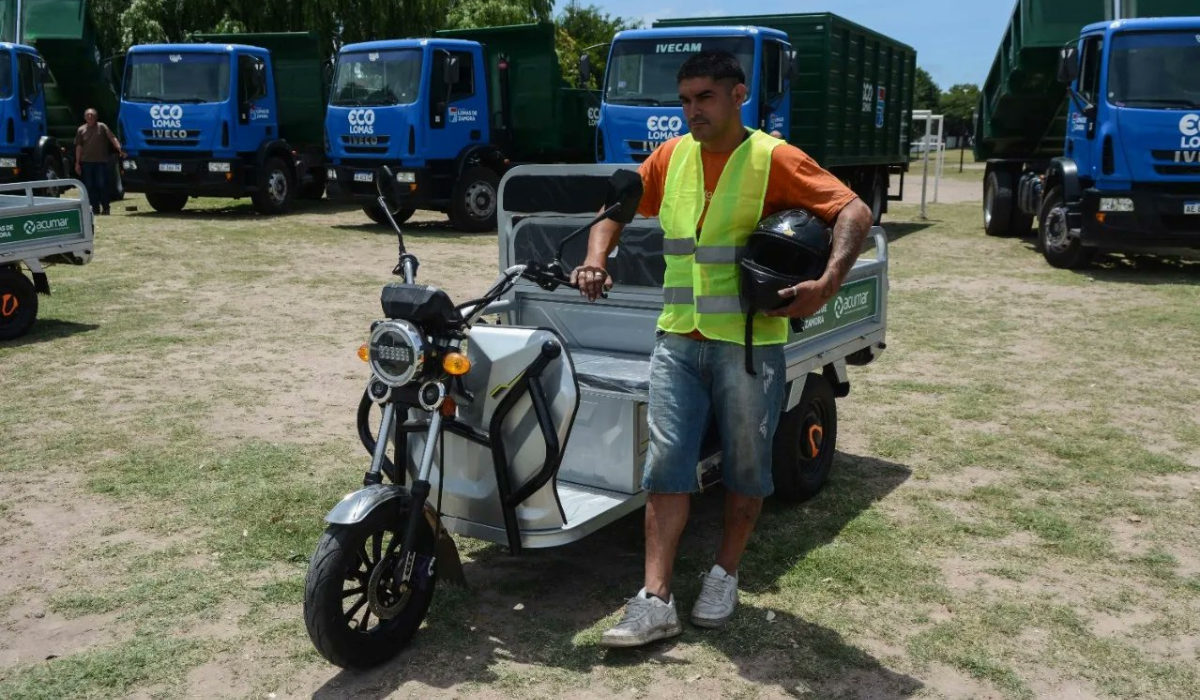 Se trata de camiones y máquinas que adquirió el Municipio de Lomas de Zamora. Además, también se entregaron motos eléctricas para recicladores urbanos.