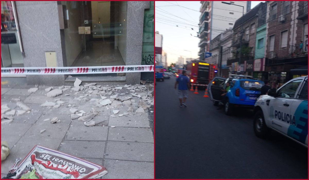 Durante el atardecer del pasado martes, el desprendimiento de la mampostería de un balcón de un edificio del centro de Lomas de Zamora ocasionó un gran susto en los peatones que caminaban por allí. Defensa Civil realizó un perímetro preventivo y también intervinieron los bomberos y personal de obras municipal.