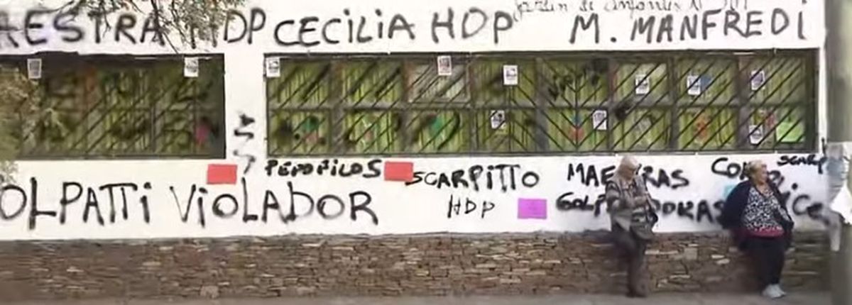 En ese contexto, las madres y los padres de los nenes que habrían sido víctimas del docente se reunieron en la puerta de la institución, ubicada sobre la calle Araoz al 1400 en Banfield, para pedir justicia y escrachar las paredes con el nombre del profesor acusado.
