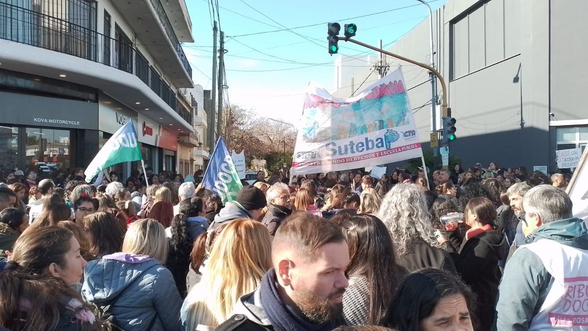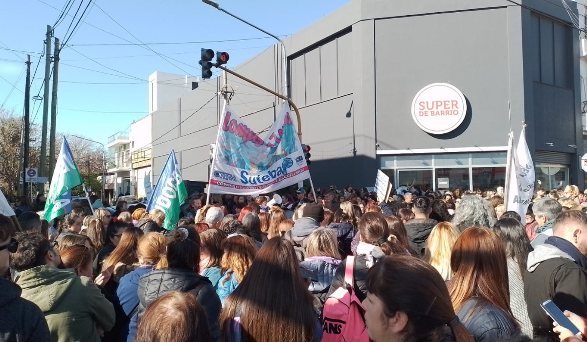 "Vamos a presentar un petitorio por los hechos de violencia que se dieron en los Jardines 940 y 907, donde se violentaron las instituciones y se amenazaron a las compañeras maestras jardineras", expresó Emanuel Ríos, secretario general adjunto de SUTEBA, frente al organismo mencionado anteriormente, ubicado en la Av. Hipólito Yrigoyen al 3300.