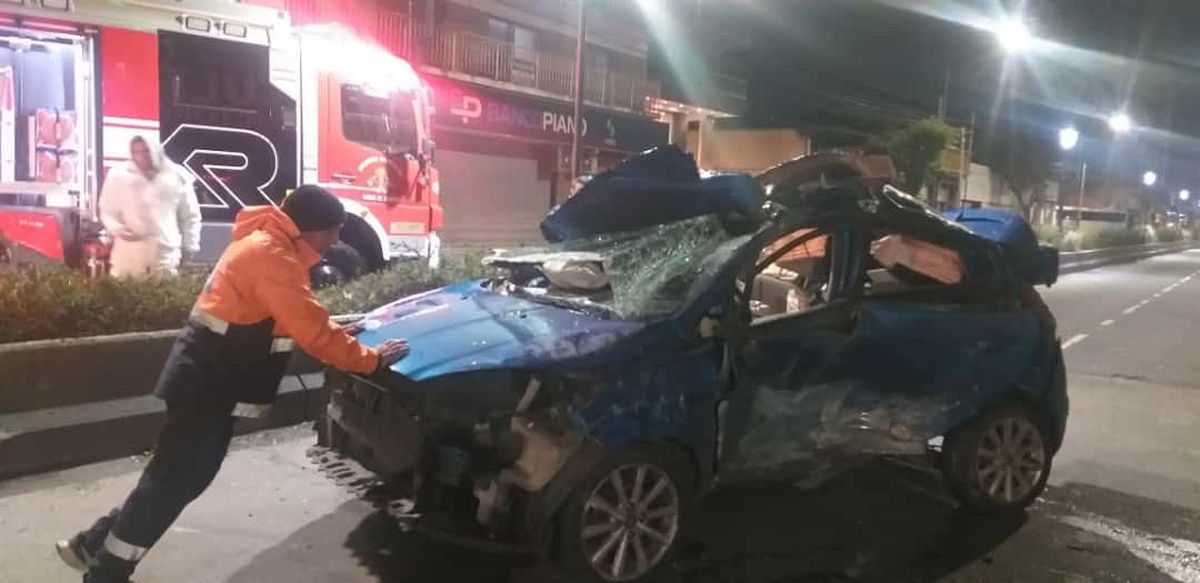 De esta manera, el Chevrolet Corsa habría tocado “levemente” al Ford Fiesta produciendo que perdiera el control e impactara contra el boulevard que separa los carriles de la Avenida Hipólito Yrigoyen y culminara volcado.
