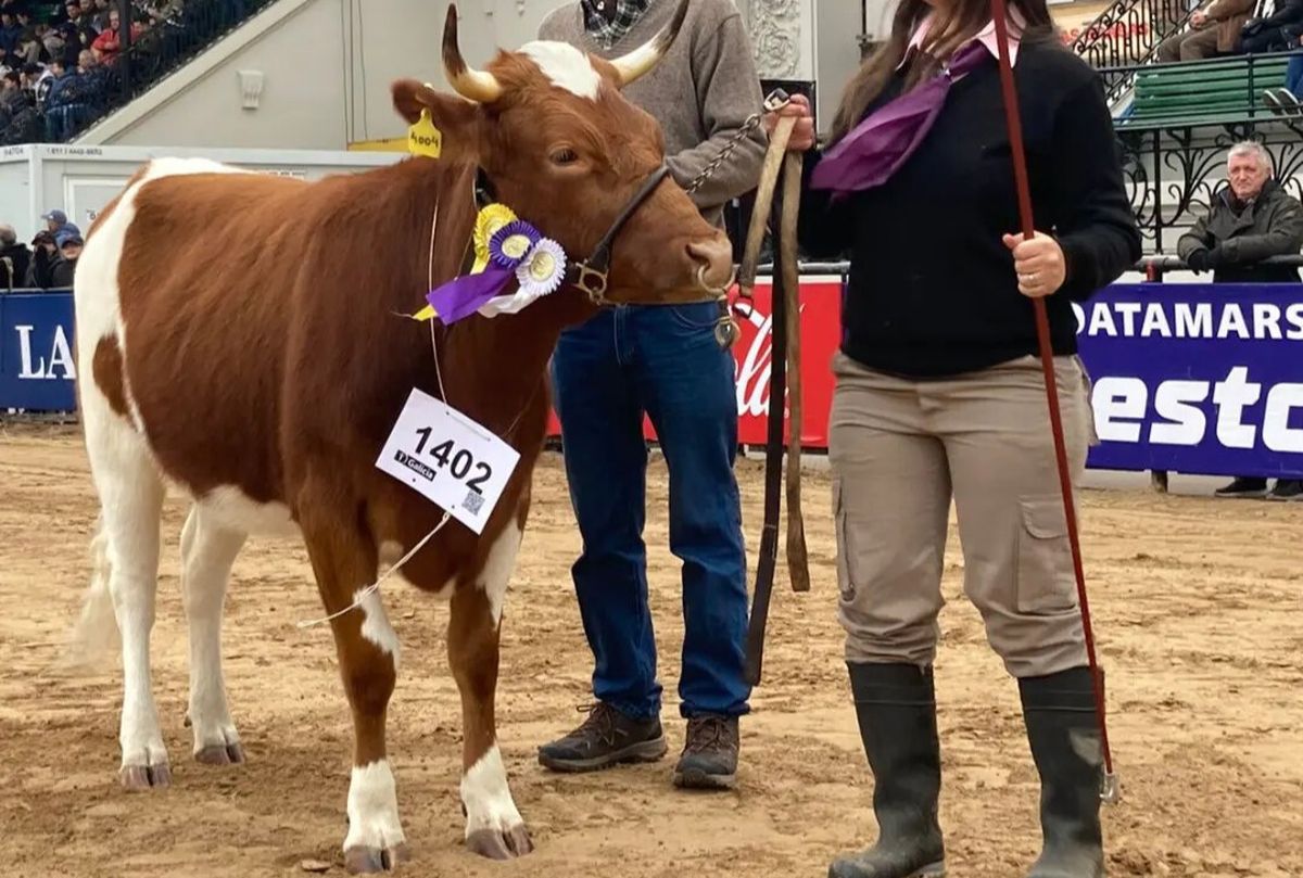 La vaquillona "Yoli", presentada por la facultad de Ciencias Agrarias de la Universidad de Lomas de Zamora, fue ganadora de un primer puesto en La Rural 2023.