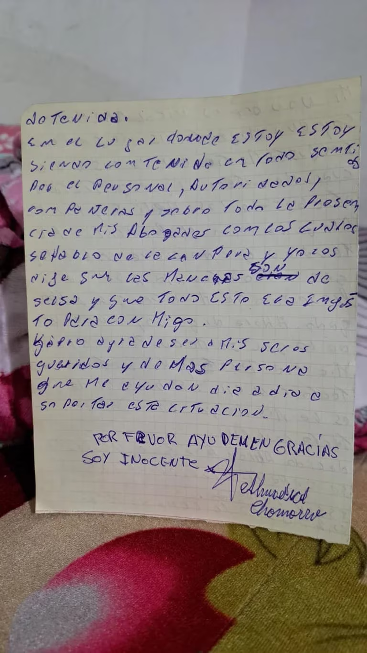 Antes de finalizar su descargo, la mujer agradeció a sus abogados, al personal de la alcaldía y las autoridades por el acompañamiento que recibe. “Por favor, ayúdenme. Gracias. Soy inocente”, finalizó la detenida en su escrito.