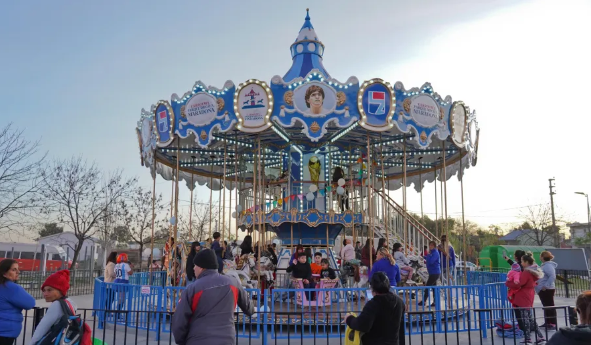 El Municipio de Lomas de Zamora inauguró una nueva calesita en el Parque Diego Armando Maradona que está ubicado en la calle Recondo 1200 en la localidad de Villa Fiorito.