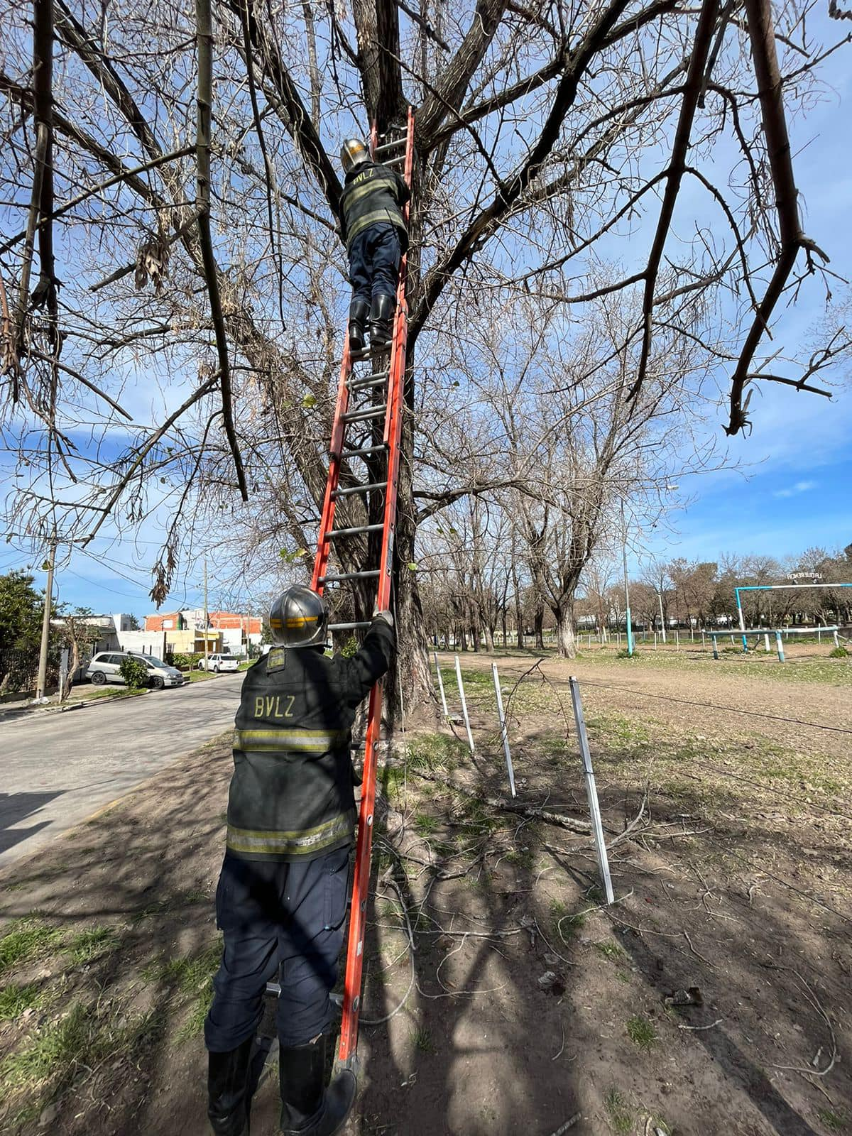 Durante la tarde del pasado martes, los Bomberos Voluntarios de Lomas de Zamora llevaron adelante el rescate de un gato que había subido a lo más alto de un árbol y no podía bajar. El felino fue entregado sano y salvo a su tutora.