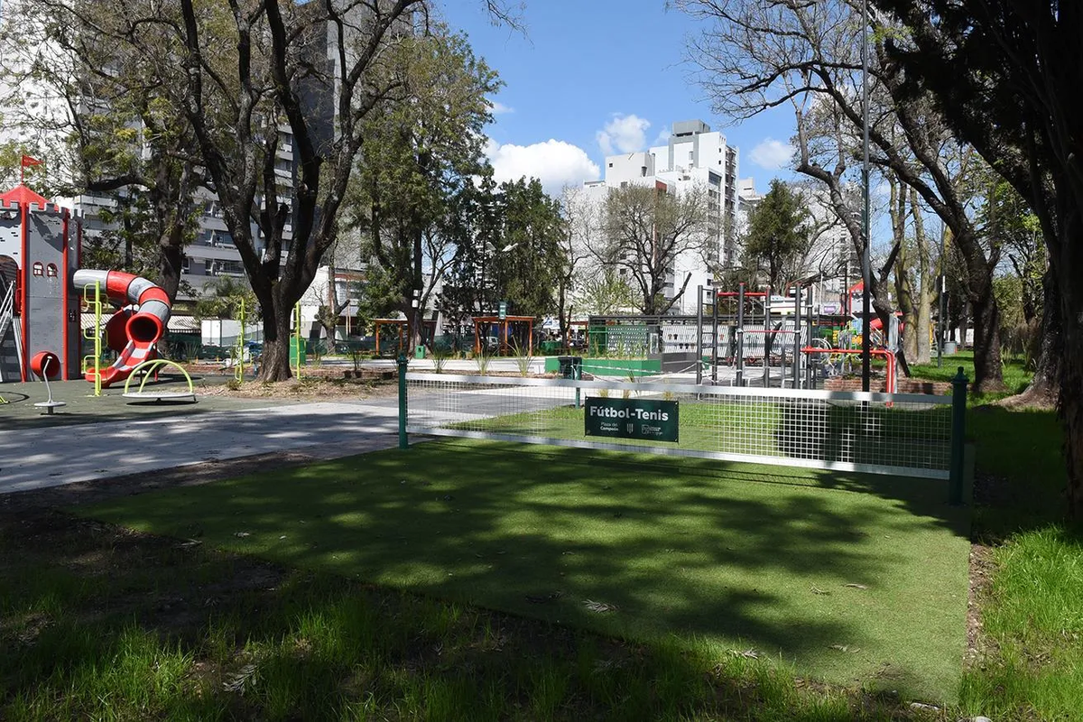 Una de las nuevas plazas más destacadas es la del Campeón, en Vergara y Maipú, frente a la estación de Banfield. Allí los operarios cambiaron las veredas tanto dentro del predio como en los alrededores. Además, instalaron 10 pérgolas de madera con mesas y bancos pensadas para el descanso de los vecinos.