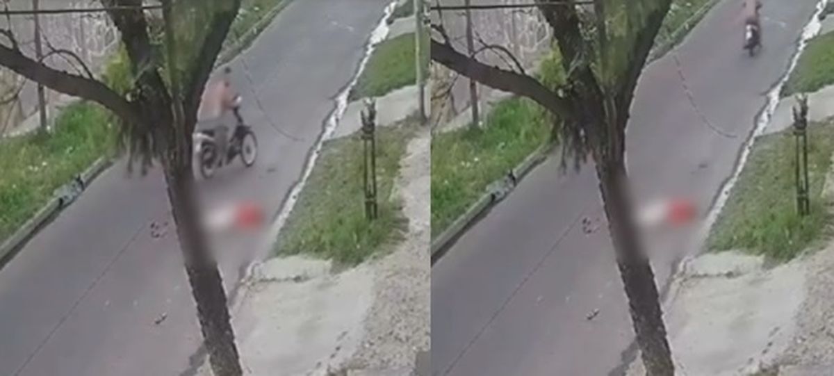 Tras el impacto, la jubilada golpeó su cabeza y en el video se ve que no volvió a moverse. Mientras que el motociclista se reincorporó, observó a la víctima en el piso, volvió a subirse a la moto y escapó del lugar.