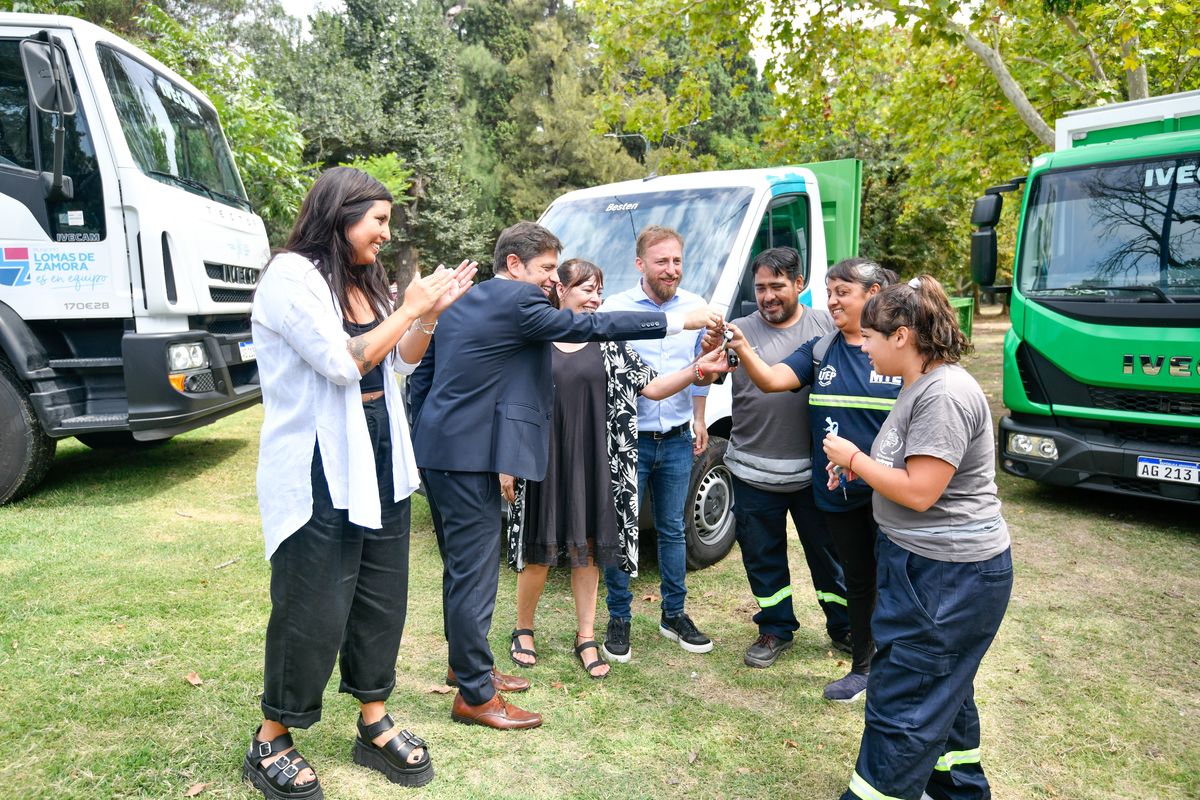 El gobernador de la provincia de Buenos Aires, Axel Kicillof, encabezó este jueves el acto de entrega de títulos de propiedad gratuitos para familias del municipio de Lomas de Zamora, donde además puso en funcionamiento tres camiones para tareas de reciclado y promoción ambiental. Fue junto al intendente local, Federico Otermín; las ministras de Ambiente, Daniela Vilar; y de Hábitat y Desarrollo Urbano, Silvina Batakis; la jefa de Asesores del Gobernador, Cristina Álvarez Rodríguez; y el ministro de Justicia y Derechos Humanos, Juan Martín Mena.