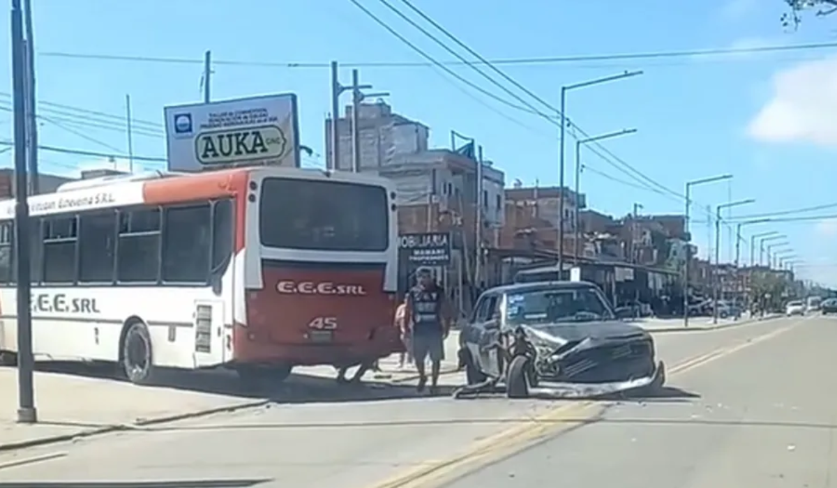 Luego del impacto, el colectivo terminó subiendo a la vereda de la Av. Olimpo, mientras que el auto quedó con la parte delantera severamente dañada sobre la calzada de la avenida.