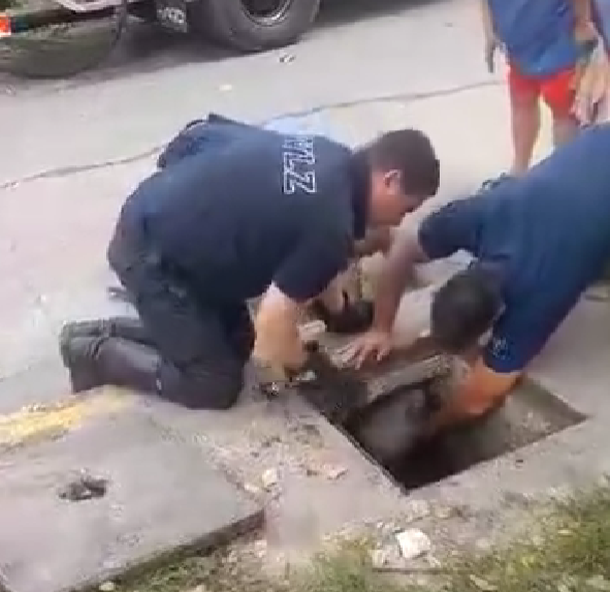 Lomas de Zamora: así rescataron a un perro atrapado en un sumidero