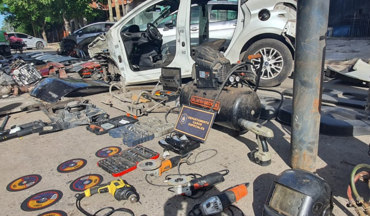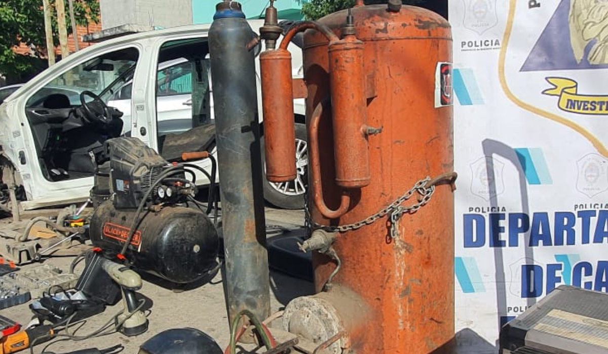 También hallaron diversas herramientas como amoladoras, sopletes, pulidoras y perforadoras, que servían para realizar el desarmado de los vehículos y para modificar el grabado que se encuentra en los cristales de los rodados con el número de patentes.