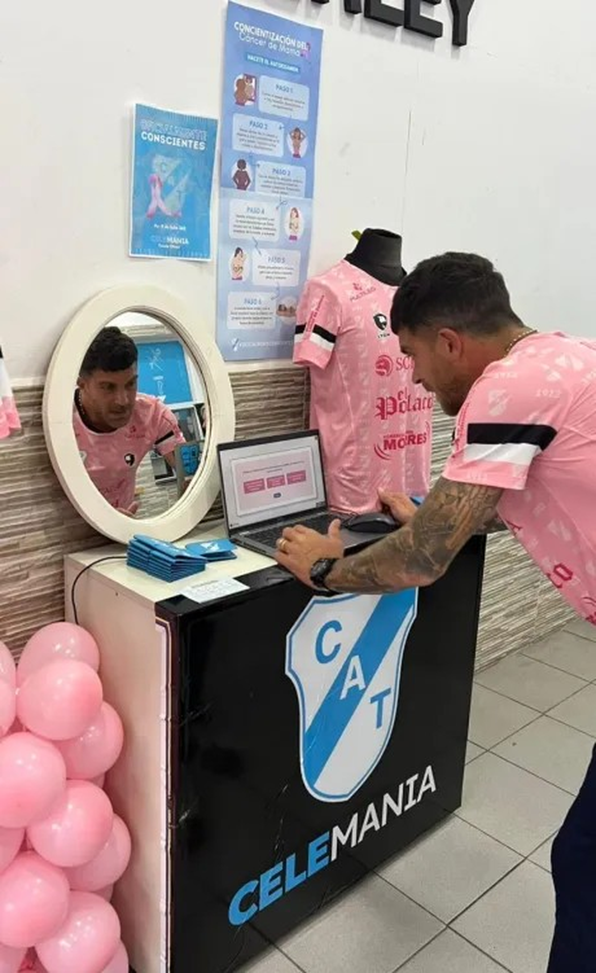 Durante la jornada de presentación se instaló un stand informativo donde se entregaron guías con el paso a paso para realizar la autoexploración mamaria. También se brindaron charlas breves sobre la importancia de los controles médicos anuales y se destacó que el cáncer de mama también puede afectar a hombres. Asimismo, hubo un juego interactivo con preguntas, en donde los que respondían correctamente recibían un tarjetero oficial del club como regalo.