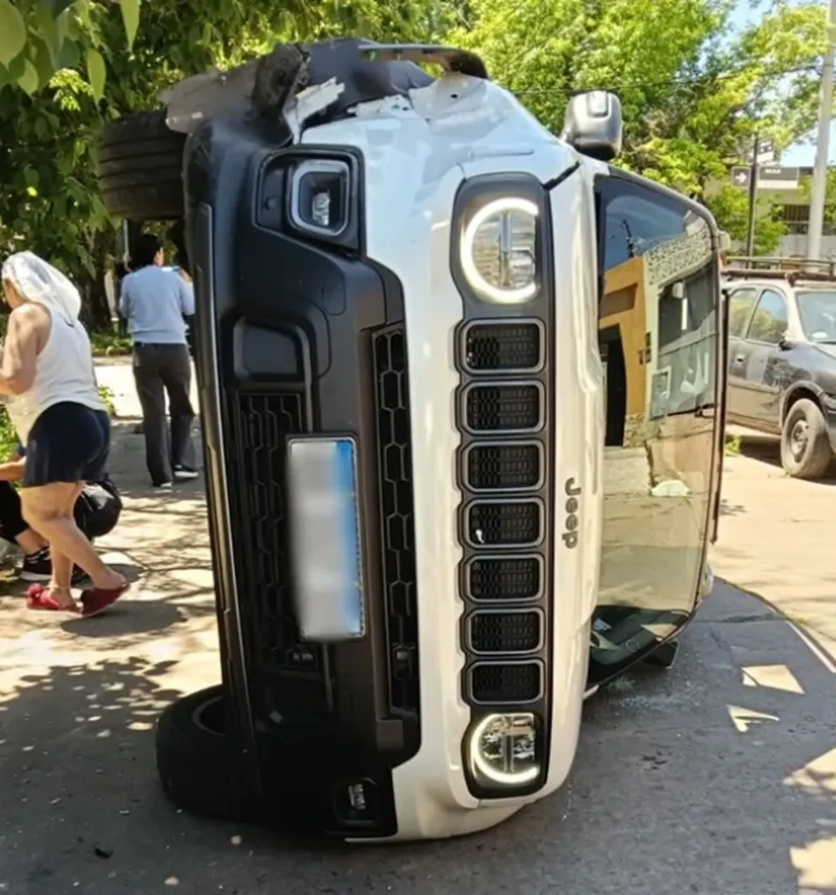 El hecho ocurrió este domingo al mediodía, en el cruce de las calles General Paz y San Blas, donde según informaron fuentes oficiales, la conductora de una Jeep Renegade blanca intentaba estacionar cuando una maniobra fallida le hizo perder el control del vehículo. La camioneta se subió a la vereda, impactó contra un cantero y volcó hacia la izquierda.