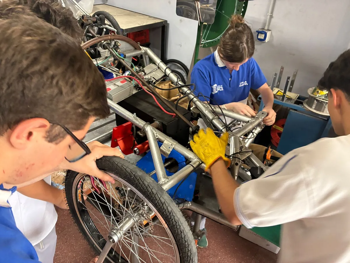El grupo está integrado por 20 estudiantes de cuarto, quinto y sexto año, que trabajan en los laboratorios de la Facultad. Allí cuentan con la asistencia de docentes y técnicos de la universidad, que brindan capacitaciones y acompañan en tareas específicas como soldadura, ensamblaje y control del vehículo.