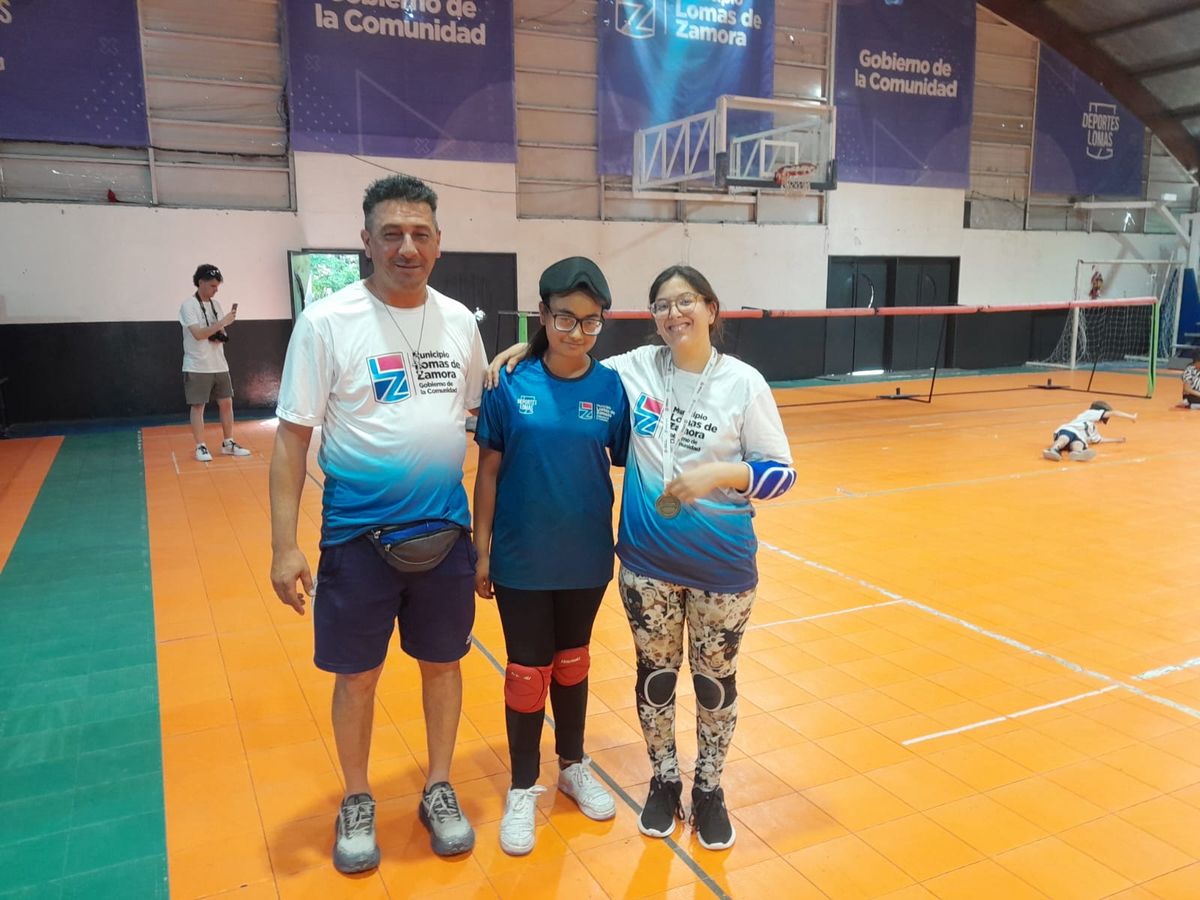 La referencia es para Néstor, del área de Deportes Inclusivos, especialista en goalball, y también Laura, Nancy y Carolina, las promotoras de los talleres que están a cargo del programa con el que se busca acercar a los chicos a la temática.