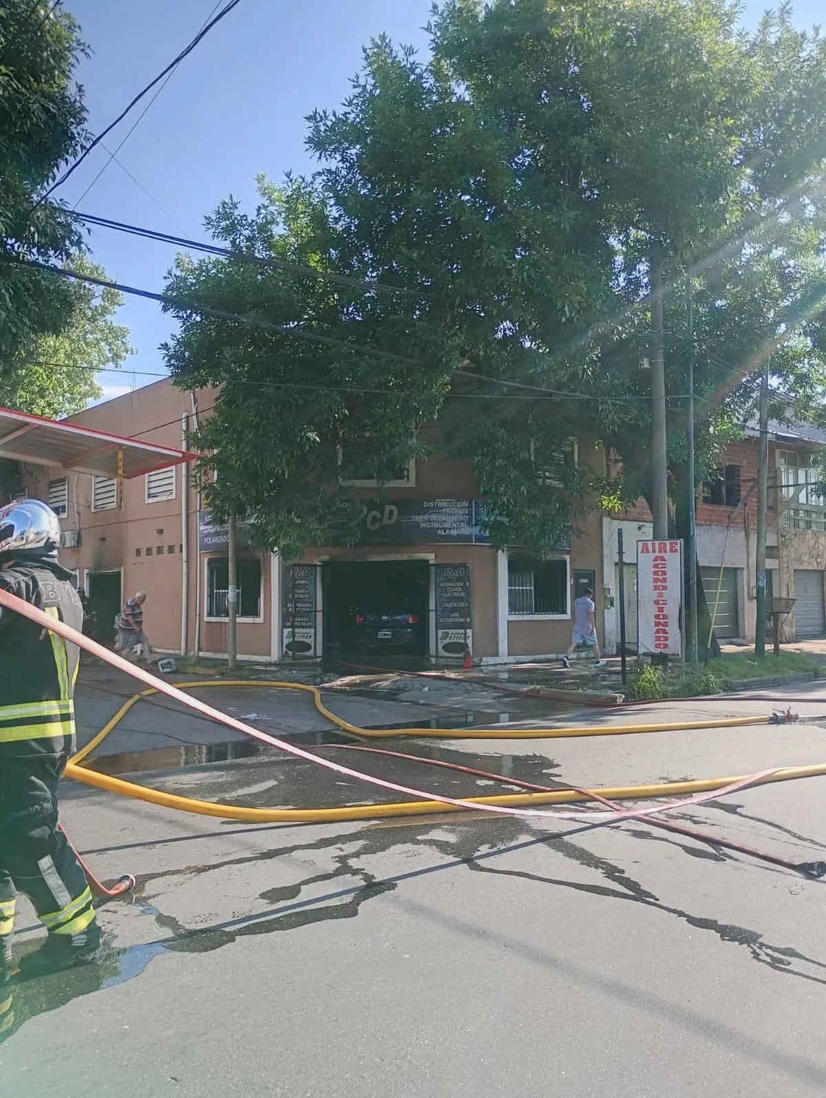 El fuego se desató cerca de las 8:00 de la mañana en un taller ubicado en la esquina de las calles Larroque y Montero, donde funciona el comercio “PCD”, dedicado a la reparación de vehículos. En ese sentido, vecinos de la zona advirtieron el fuego y dieron aviso a los servicios de emergencia.
