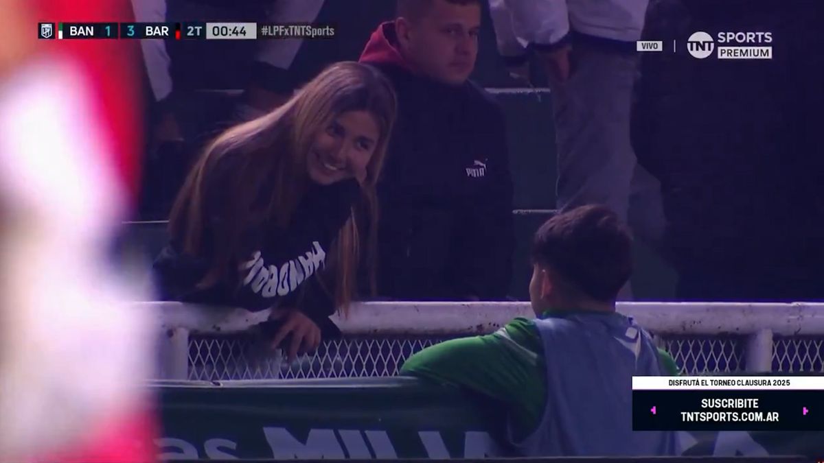 La secuencia de la charla entre un alcanzapelotas y una hincha fue captada por la transmisión del partido entre Banfield y Barracas Central.