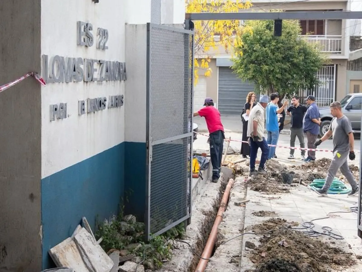 Trabajos de infraestructura en un establecimiento educativo de Lomas de Zamora, en el marco del Plan de Infraestructura Escolar que tendrá una nueva etapa durante el receso de verano.