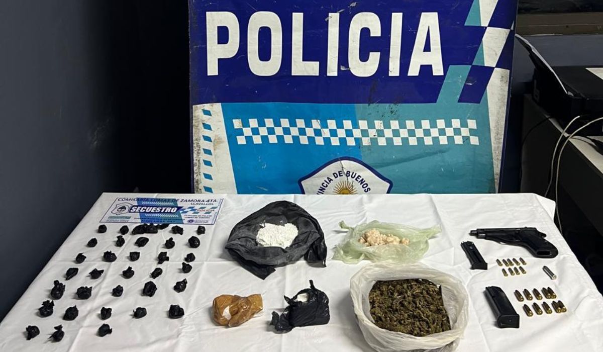 Durante el procedimiento, los efectivos secuestraron una pistola calibre 22 con municiones, cuya numeración se encontraba suprimida, y una bolsa con marihuana con un peso aproximado de 250 gramos. En el interior de la vivienda también se incautaron 650 gramos de cocaína compacta, 33 envoltorios de cocaína, una balanza de precisión, elementos utilizados para el corte y fraccionamiento de estupefacientes y teléfonos celulares.