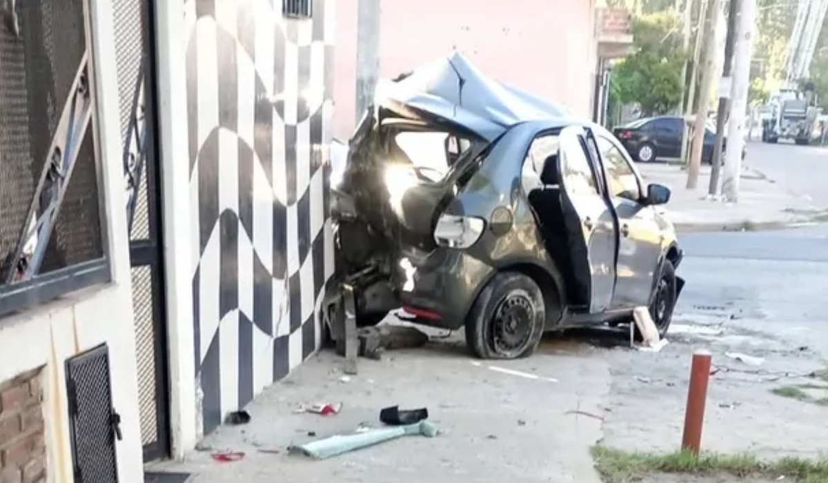 Luego del choque, el Volkswagen habría continuado su recorrido hasta colisionar contra la persiana del lubricentro, que resultó dañada, al igual que una de las paredes del local. El frente del comercio sufrió roturas visibles producto del impacto del vehículo.