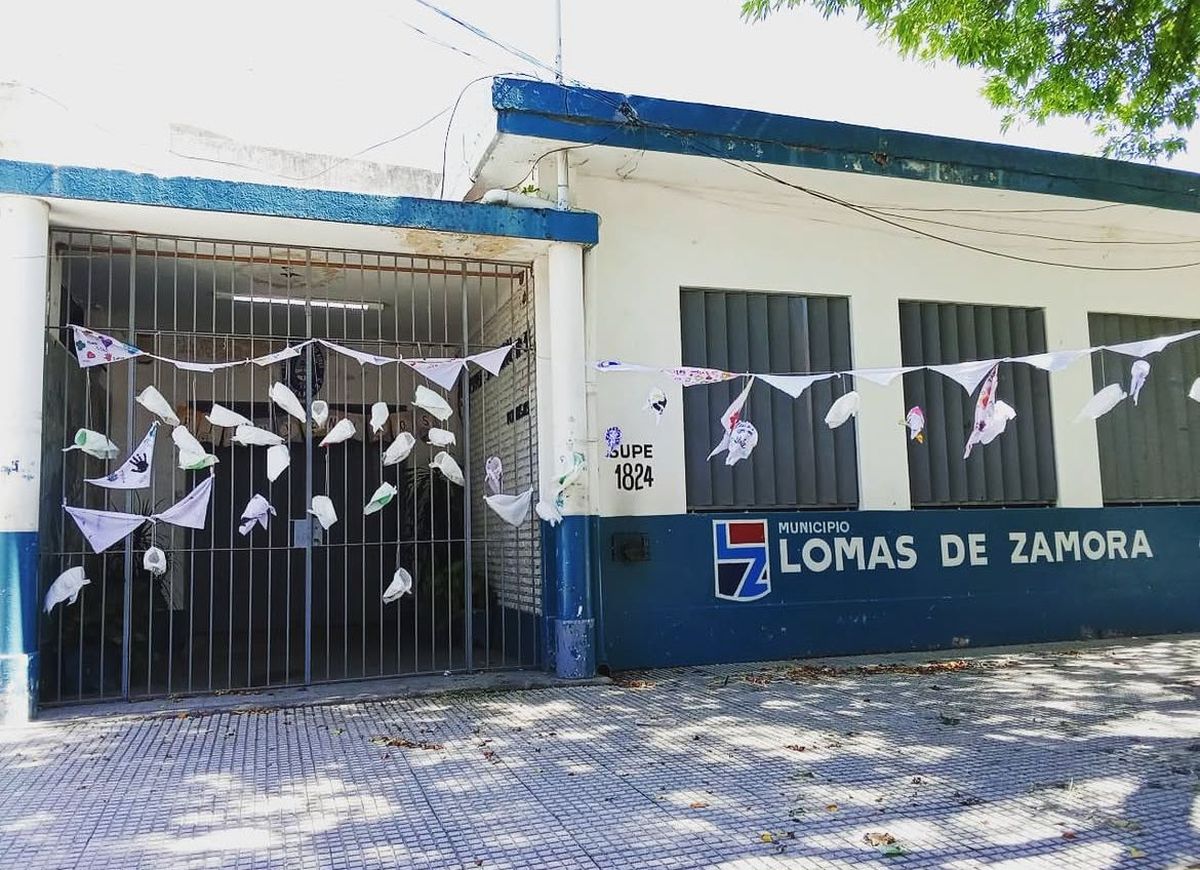 La institución está ubicada sobre la calle Supe, en el partido de Lomas de Zamora. Según relató una de las maestras a través de sus redes sociales, este domingo encontró los pañuelos dentro de un cesto de basura situado en la misma cuadra de la escuela.