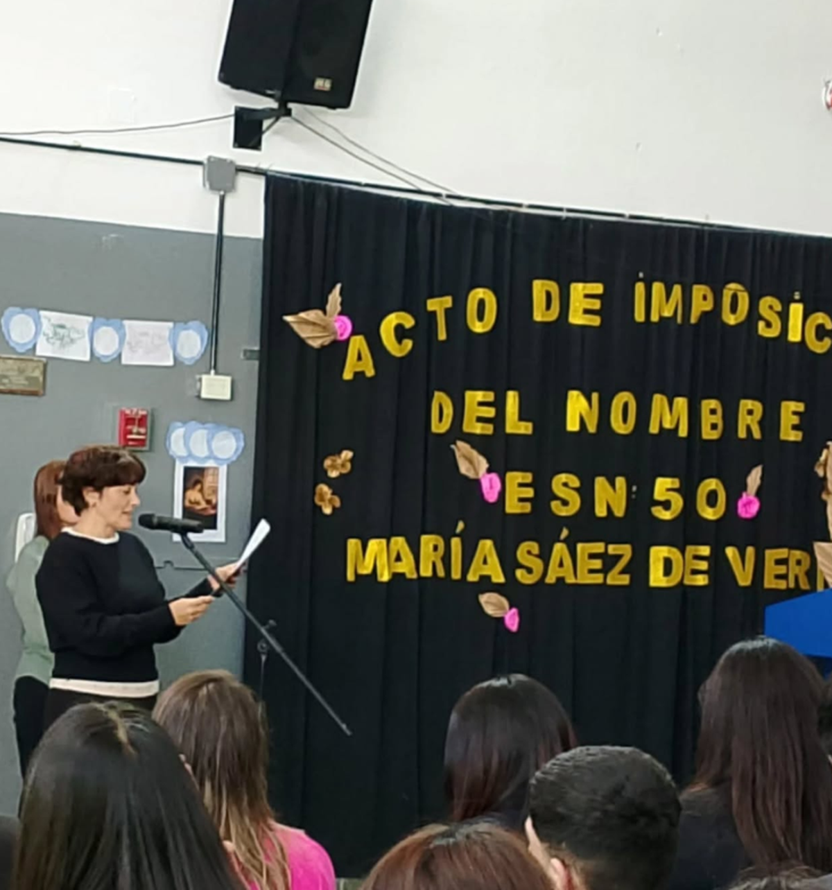 La Escuela Secundaria N° 50 de Lomas de Zamora realizó este jueves 9 de abril el acto de imposición de su nombre, en el que quedó formalizado como “María Sáez de Vernet”. La actividad se llevó a cabo en la institución, ubicada en Villa Centenario, con la participación del intendente de Lomas de Zamora, Federico Otermín.