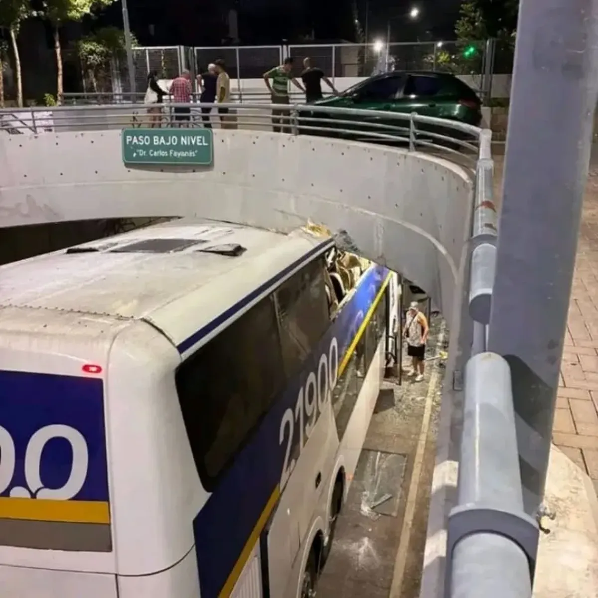 Según el relató de los testigos, el colectivo intentó atravesar un túnel cuya altura no era suficiente para este tipo de vehículos, que suelen superar los cuatro metros.