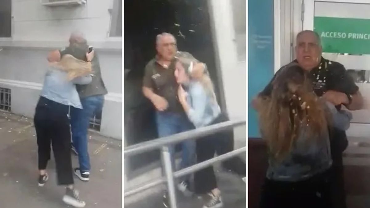 Ya en las escalinatas del Italiano, "Pata" parece querer responder a las agresiones, pero la joven que iba con él se lo impedía. Todo terminó con un fuerte operativo policial en las inmediaciones del centro de salud, y con Medina y su hija detenidos.
