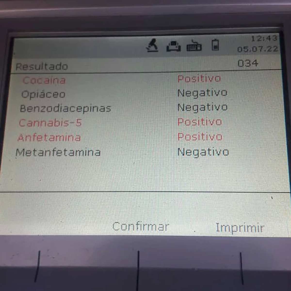 Efectivos de la Comisaria 2ª de la Policía Bonaerense junto a inspectores municipales fueron quienes le realizaron los test de alcoholemia y drogas. En un primer control arrojó 2.43 gramos de alcohol por litro de sangre. Luego, hicieron una segunda medición que dio 1.60. Por su parte, el test de drogas resultó positivo para cocaína, marihuana y anfetamina.
